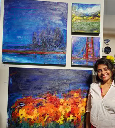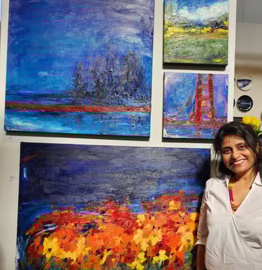 RUJUTA PARADKAR: Rujuta Paradkar begins each painting loosely and follows where it leads. Raised in India and shaped by years living in Japan, Thailand, Indonesia, and Sri Lanka before settling in New York, she brings a genuinely global visual education to canvases grounded in observation and instinct. She paints with the patience of someone who has never stopped being astonished by what color can do. Represented by galleries in Canada, Ohio, and Florida. ArtExpo New York exhibitor every year since 2022.